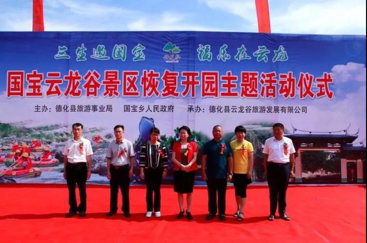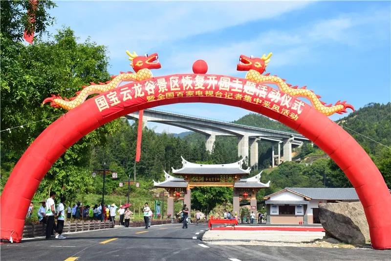 2018年5月19日,國寶云龍谷景區舉行了隆重恢復開園暨全國百家電視臺大型采風活動儀式。德化縣人民政府副縣長張秋英、興巖集團董事長葉小清、縣直有關單位領導、國寶鄉主要領導以及全國百家電視臺采風團生態旅游組媒體朋友、德化電視臺、德化網、瓷都德化報、實驗小學瓷都小記者、攝影協會、剪刻紙協會、古琴協會、作家協會、詩詞學會等出席了本次活動。
