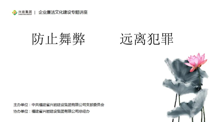 首先,閩南師范大學法學院林教授給在場的人員做了“防止舞弊 遠離犯罪”的企業廉潔文化建設專題講座,從職務犯罪的概念及分類、常見的職務犯罪、特點、原因以及預防職務犯罪的啟示與對策等5個方面給大家做了生動且精彩的一課。