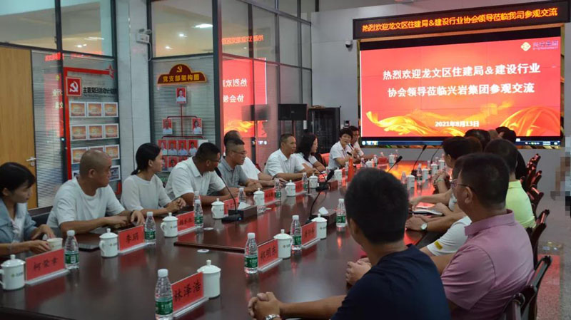 8月13日下午,由漳州市龍文區(qū)住建局副局長張小林、龍文區(qū)建設(shè)行業(yè)協(xié)會會長曾阿香帶領(lǐng)龍文區(qū)建協(xié)領(lǐng)導(dǎo)及協(xié)會單位代表蒞臨興巖集團(tuán)參觀交流。公司總經(jīng)理葉永斌、總工程師鄭東明、副總經(jīng)理張麗嬪等領(lǐng)導(dǎo)予以熱情接待。