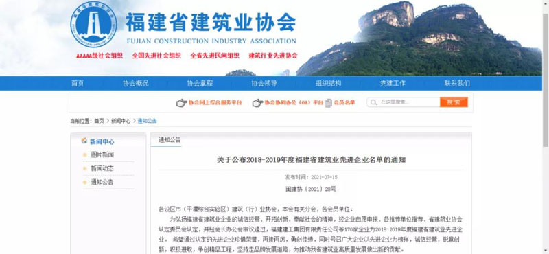 日前,根據省建協《關于開展2018-2019年度福建省建筑業“一先兩優”評選活動的通知》(閩建協[2020]42號)文的精神,在企業對標自薦的基礎上,經漳州市建筑業協會推薦、省協會復核小組復核、評審委員會評審通過,并在“福建省建筑業協會”網站公布。我集團公司和三位個人榮獲《2018-2019年度福建省建筑業先進企業、優秀經理及優秀項目經理》獎。