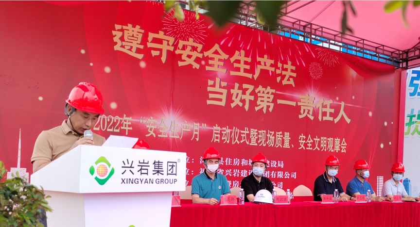 2022年6月21日,漳浦縣住房和城鄉建設局在漳浦建發•鹿溪映月項目隆重舉行2022年“安全生產月”啟動儀式暨現場觀摩會。觀摩會緊緊圍繞“遵守安全生產法,當好第一責任人“主題,觀摩會由漳浦縣住房和城鄉建設局主辦、福建省興巖建設集團有限公司承辦。漳浦縣政府副縣長洪和庭參加觀摩并做重要講話。