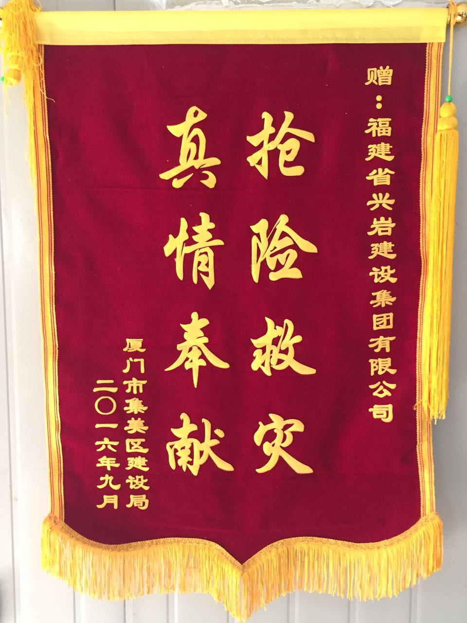 興巖集團(tuán)于2016年9月30日被廈門市集美區(qū)建設(shè)局授予“‘莫蘭蒂’臺(tái)風(fēng)災(zāi)后救援先進(jìn)單位”并受到表彰。