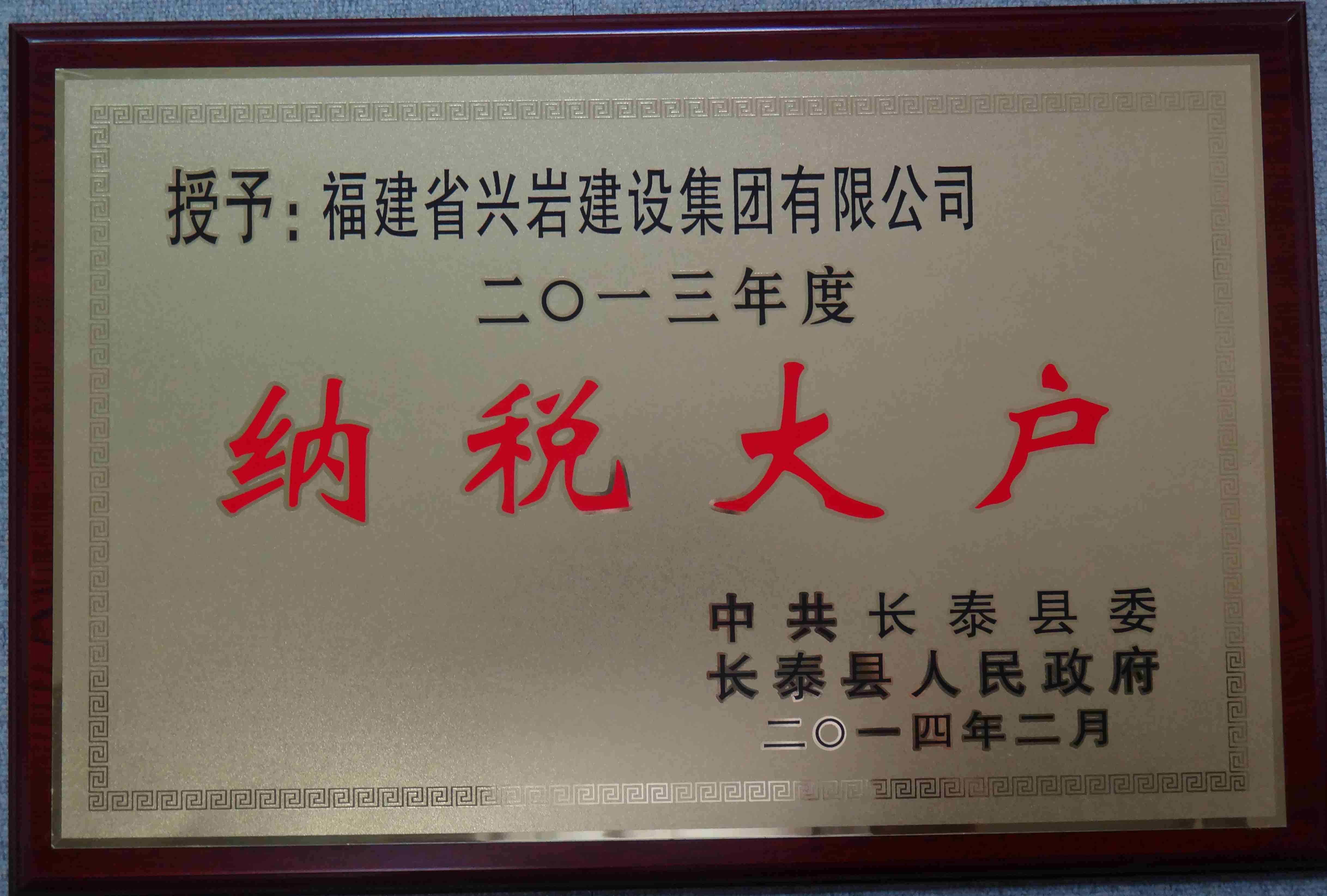 2013年度長(zhǎng)泰納稅大戶
